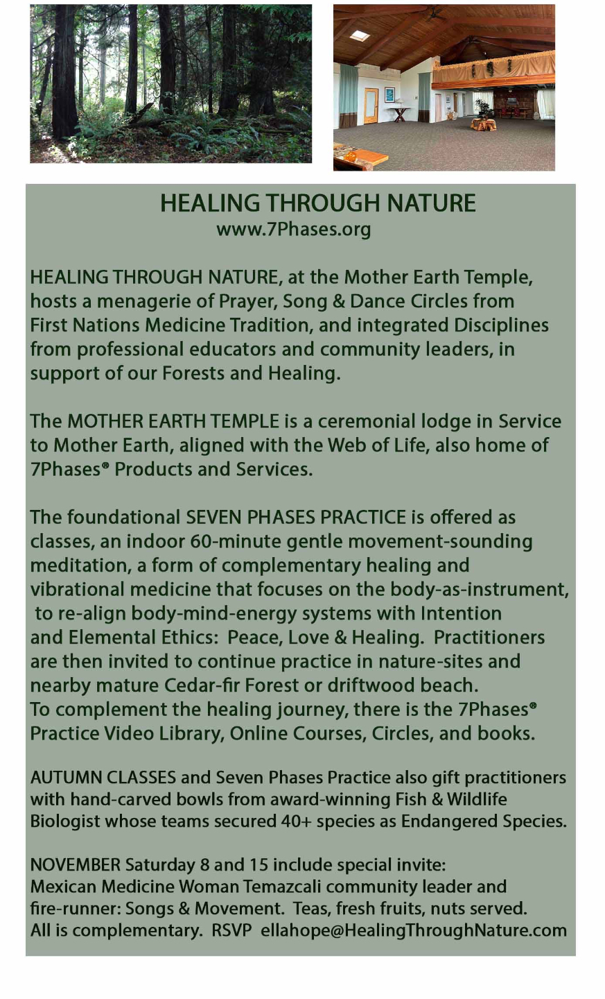Please submit the Form that includes your areas of interest in regard to Healing Through Nature. An invitation will be emailed with RSVP required to attend the 7Phases® Speaker-Presentation Event at the Mother Earth Temple & Eco-Center. Thankyou.